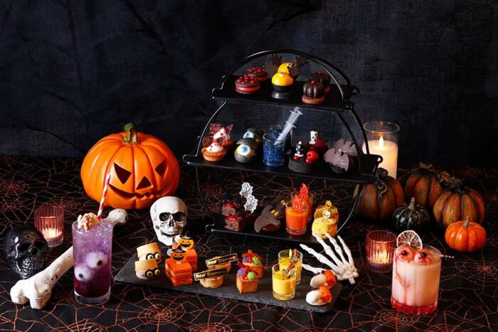 東京・赤坂のANAインターコンチネンタルホテル東京では、ドクロ型チョコレートや血のようなソースが滴るケーキなど、ホラー要素を盛り込んだ「ハロウィン・アフタヌーンティー」を展開しています。